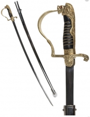 Griff: Holz mit Ziegenlederummantelung und Messing